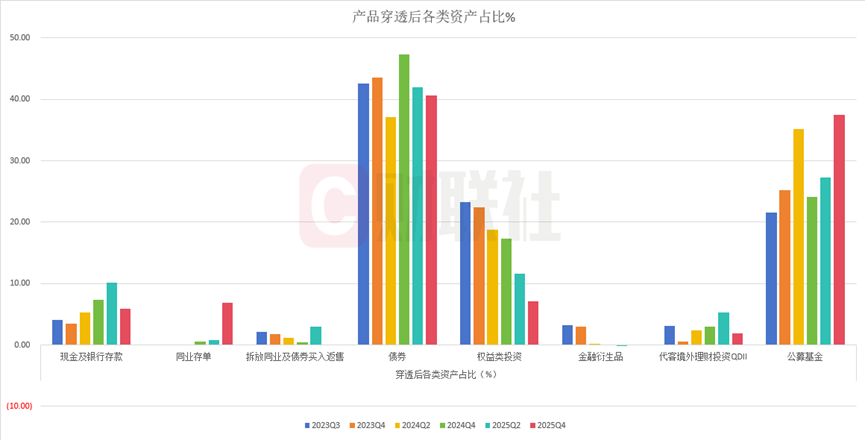 从2023年三季度到2025年四季度,产品资产配置结构持续调整。